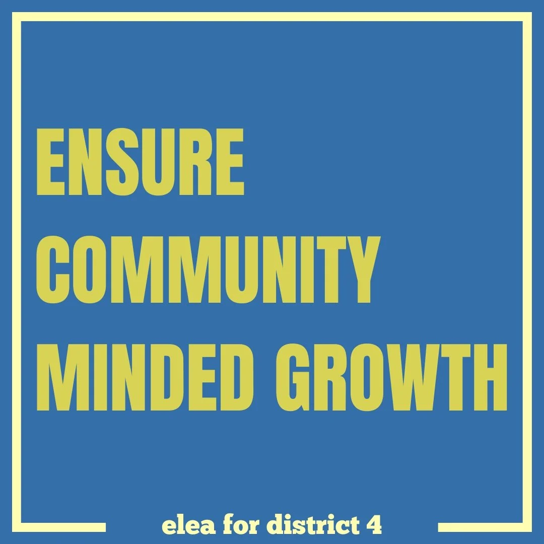 It’s time to grow District 4 based on the needs of the people who live here—the ones who’ve worked hard for their homes, remodeled them, opened businesses, planted gardens, and built lives side by side. We are capable of stopping unchecked development from erasing our history, diversity, and progress, and of protecting the people who are already here while ensuring new future generations can afford to call this beautiful area home.